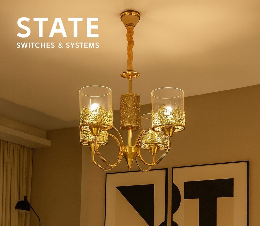 AmberBloom LuxuryLighting ChandelierDesign InteriorDecor HomeElegance GoldenGlow LightingInspiration ModernClassic StateSwitches 4BElectricals