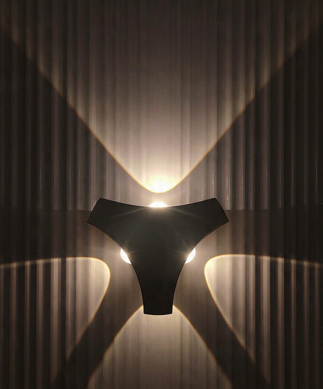 Unique tri-wing wall light casting artistic beam patterns for bold decorative interiors.