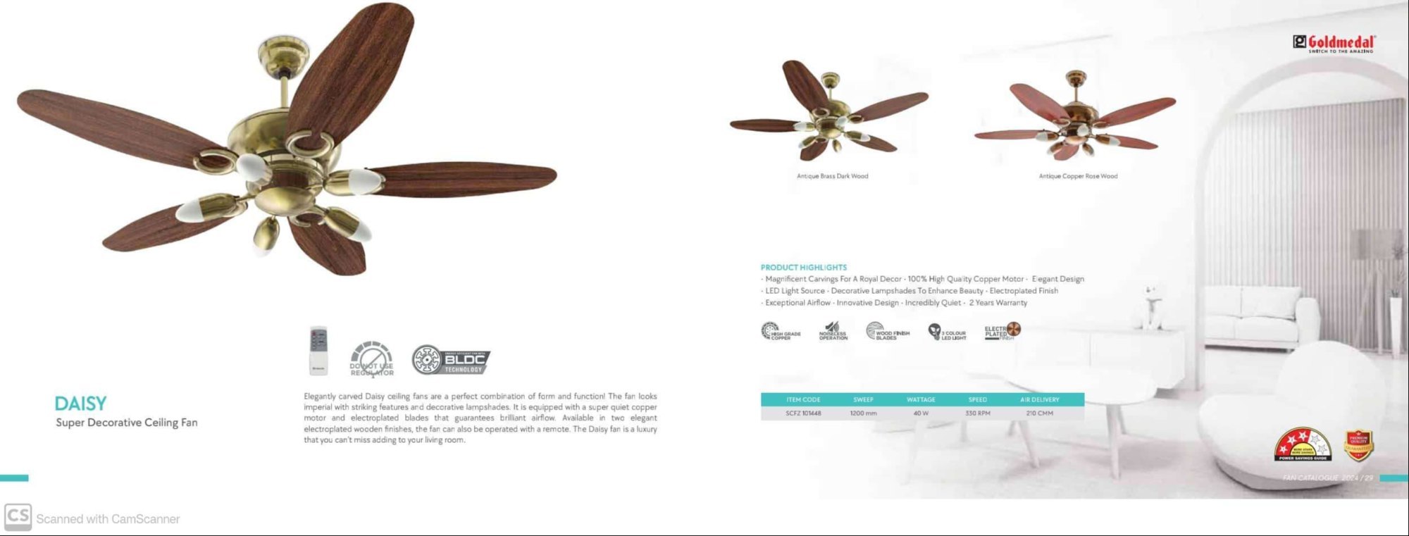 Add a soft floral flair to your ceiling with the Daisy 6-Blade Decorative Fan, designed with elegance and energy efficiency in mind. Powered by BLDC motor technology, it ensures ultra-low power consumption, whisper-quiet performance, and a stunning designer finish — perfect for modern and cozy interiors alike.