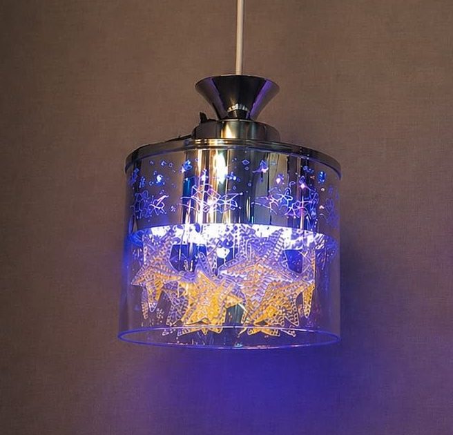 Modern dual pendant light set featuring artistic LED illumination, designed to create a unique and vibrant lighting experience.