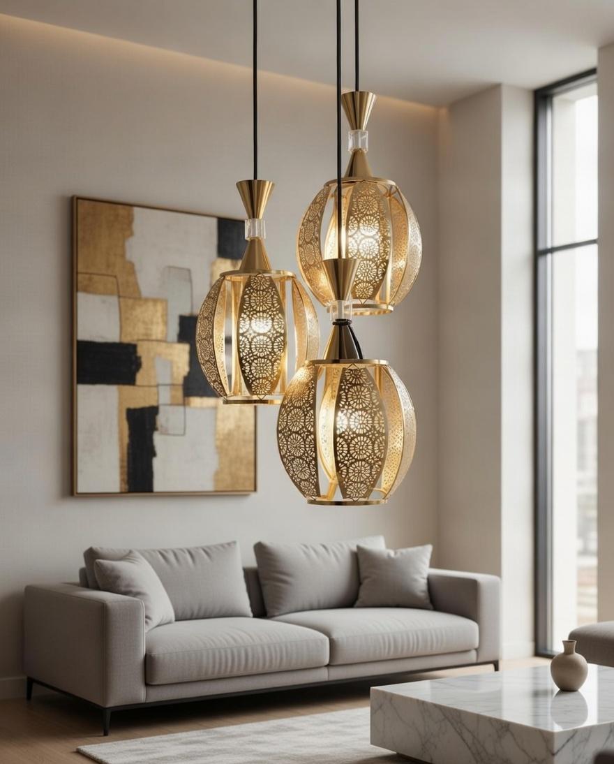 Home » Shop » Luxury Moroccan Golden Triple Pendant Light – Premium Designer Hanging Lamp