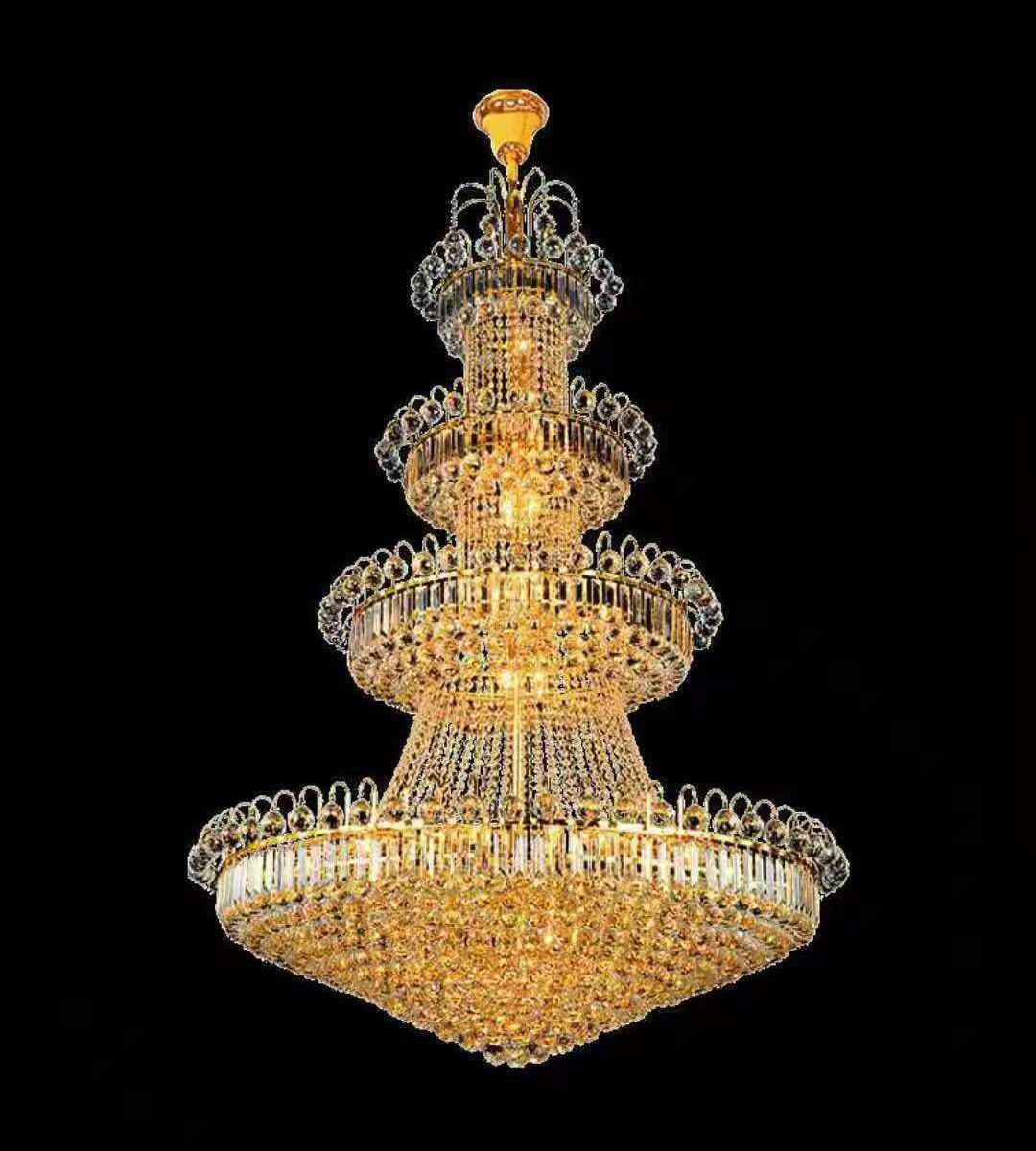 The Majestic Crown is a true symbol of royal elegance, crafted with multiple cascading tiers of premium-grade crystals that radiate timeless brilliance. Its multi-layered circular design creates an enchanting play of light, making it a centerpiece of sophistication for luxury villas, grand staircases, banquet halls, and high-ceiling interiors. Designed to impress, this chandelier combines classic grandeur with modern craftsmanship, ensuring your space glows with opulence and style.