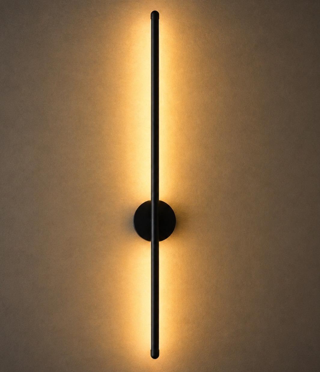 Elegant vertical LED wall light with warm ambient glow, designed for modern interiors, accent walls, and luxury spaces.