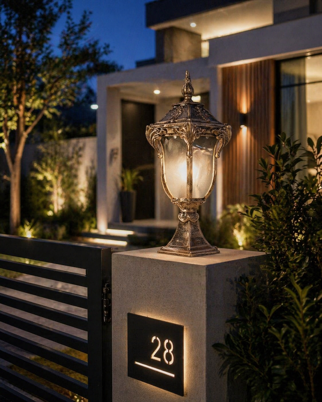 Crafted with fine detailing and a premium antique finish, this lantern delivers timeless elegance. Its classic structure paired with warm illumination creates a welcoming and luxurious outdoor atmosphere.
